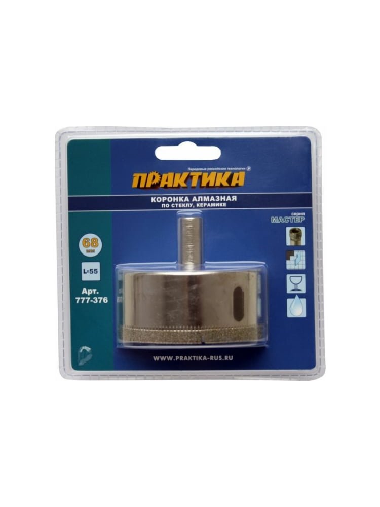 Коронка алмазная ПРАКТИКА "Мастер" по стеклу и керамике 68 мм
