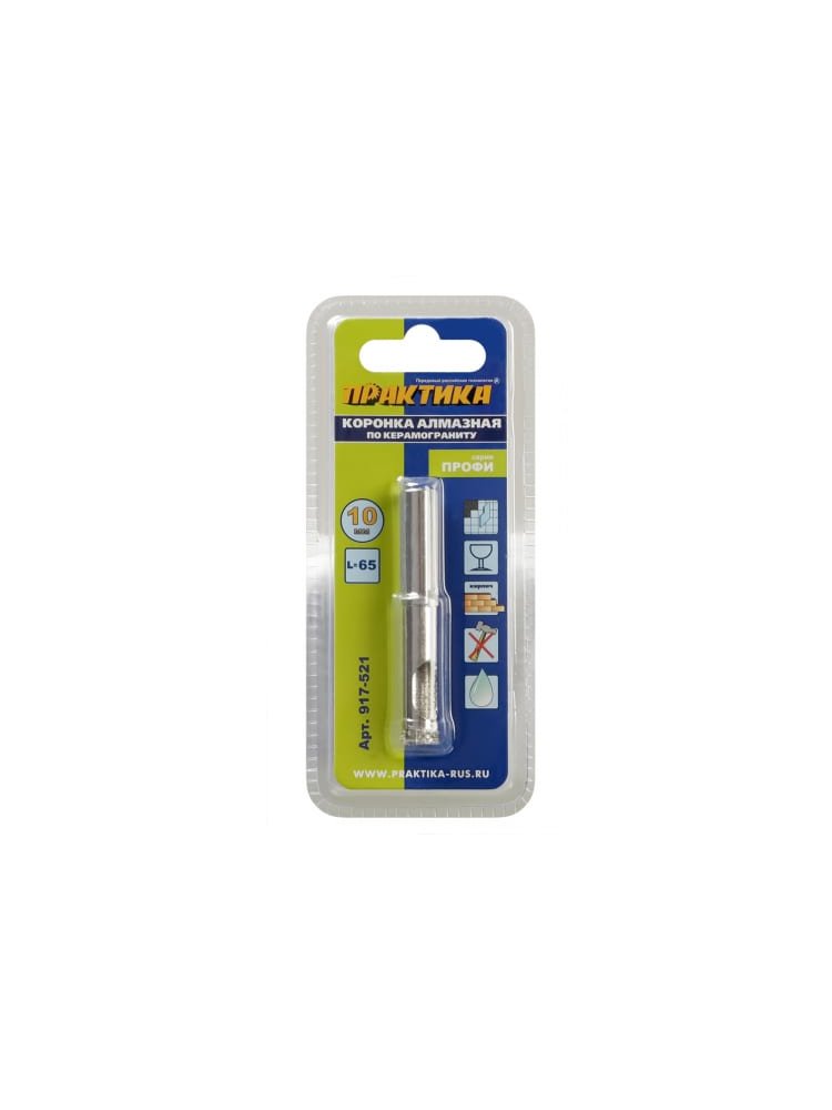 Коронка алмазная ПРАКТИКА по керамограниту/керамике 10 мм Профи
