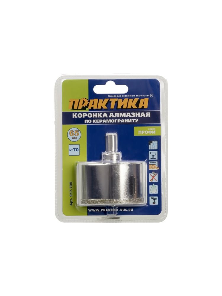 Откройте новые возможности профессионального монтажа с алмазной коронкой 65 мм — надежный инструмент для сверления идеально ровных отверстий в керамограните и керамической плитке без сколов даже на самых твердых поверхностях. Идеально подходит для установки сантехники, электрических розеток и коммуникаций.