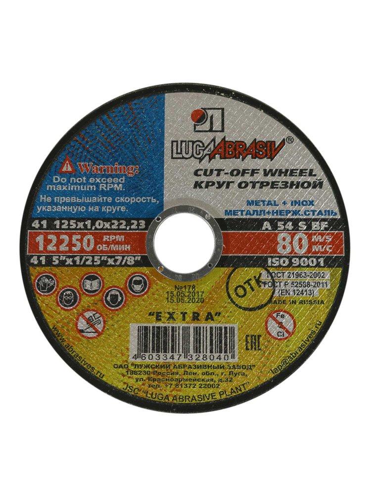 Круг отрезной по металлу и нерж. ЛУГА Extra 125*1,0*22мм