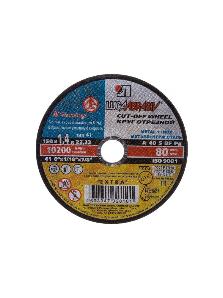 Круг отрезной по металлу и нерж. ЛУГА Extra 150*1,4*22мм