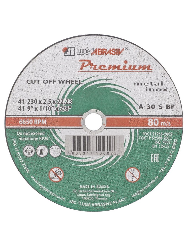 Круг отрезной по металлу и нерж. ЛУГА Premium 230*2,5*22мм в Спасск-Дальний