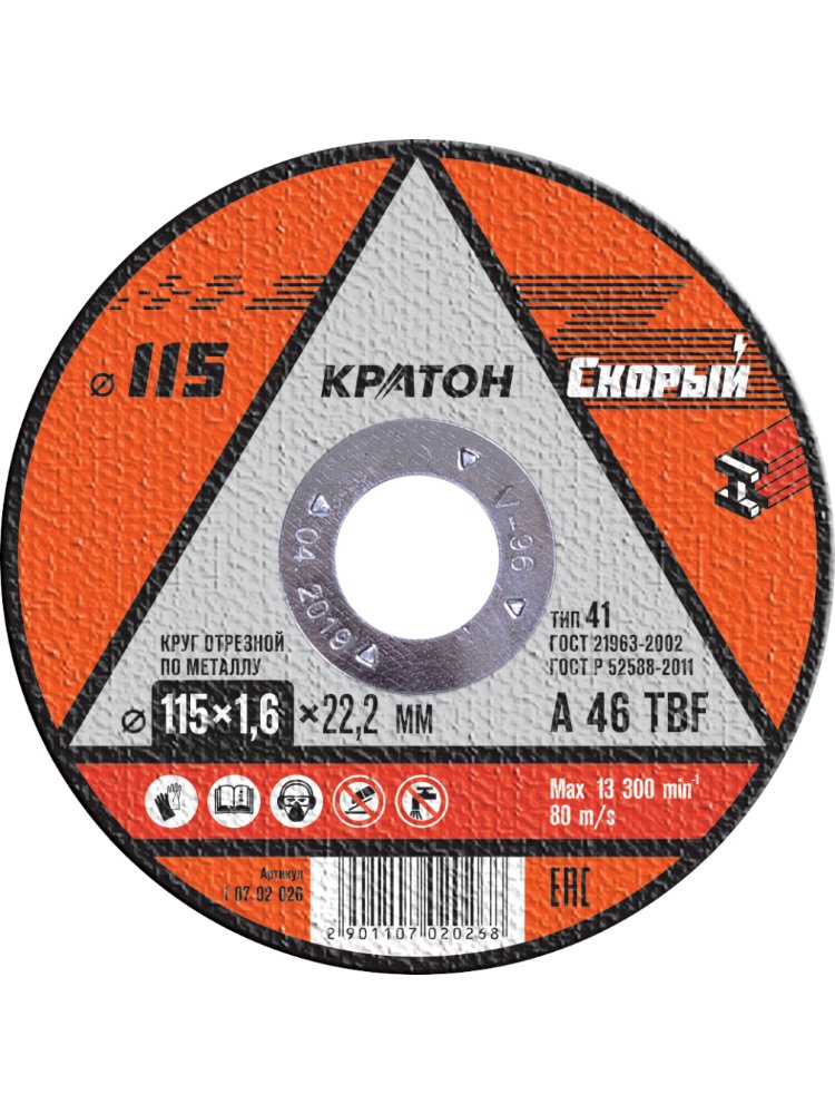 Круг отрезной по металлу КРАТОН "Скорый" 115*1,6*22,2 мм