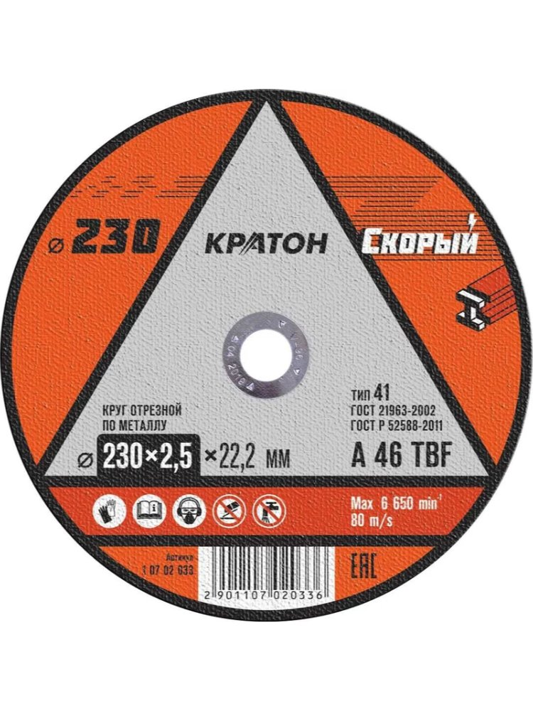 Круг отрезной по металлу КРАТОН "Скорый" 230*22,2*2,5 мм