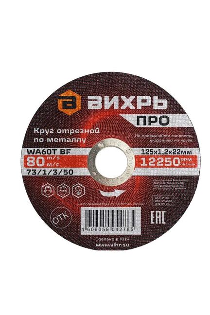 Круг отрезной по металлу ВИХРЬ ПРО 125х1,2х22 мм в Спасск-Дальний