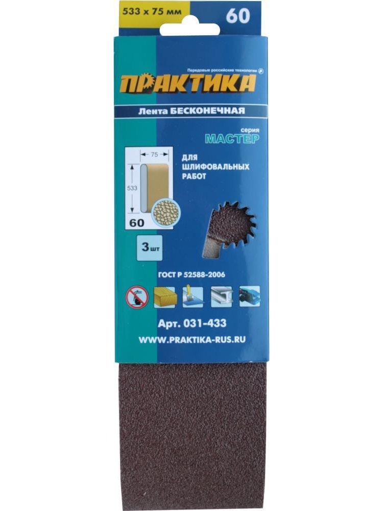 Лента шлифовальная ПРАКТИКА 75x533 мм (Р60), 3шт