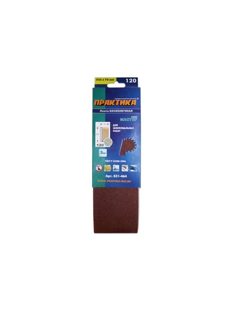 Лента шлифовальная ПРАКТИКА 75*533 мм (P120), 3 шт