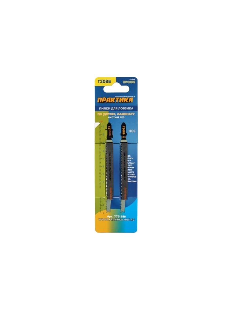 Пилки для лобзика по дереву, ДСП ПРАКТИКА тип T308B 116х90 мм, чистый рез, 2шт