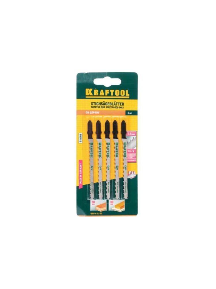 Пилки для электролобзика, Cr-V, по дереву, фанере, ламинату, фигурный рез, EU-хвостовик, шаг 2,5 мм, 75 мм, 2 шт. Kraftool 159514-2,5 имеют хвостовик европейского стандарта. Это обеспечивает совместимость с большинством современных устройств. Пилки T101AO для лобзика: точный фигурный рез, 75 мм, для дерева, фанеры и ДСП, 2 шт. в комплекте — чистый срез и надежное качество работы.