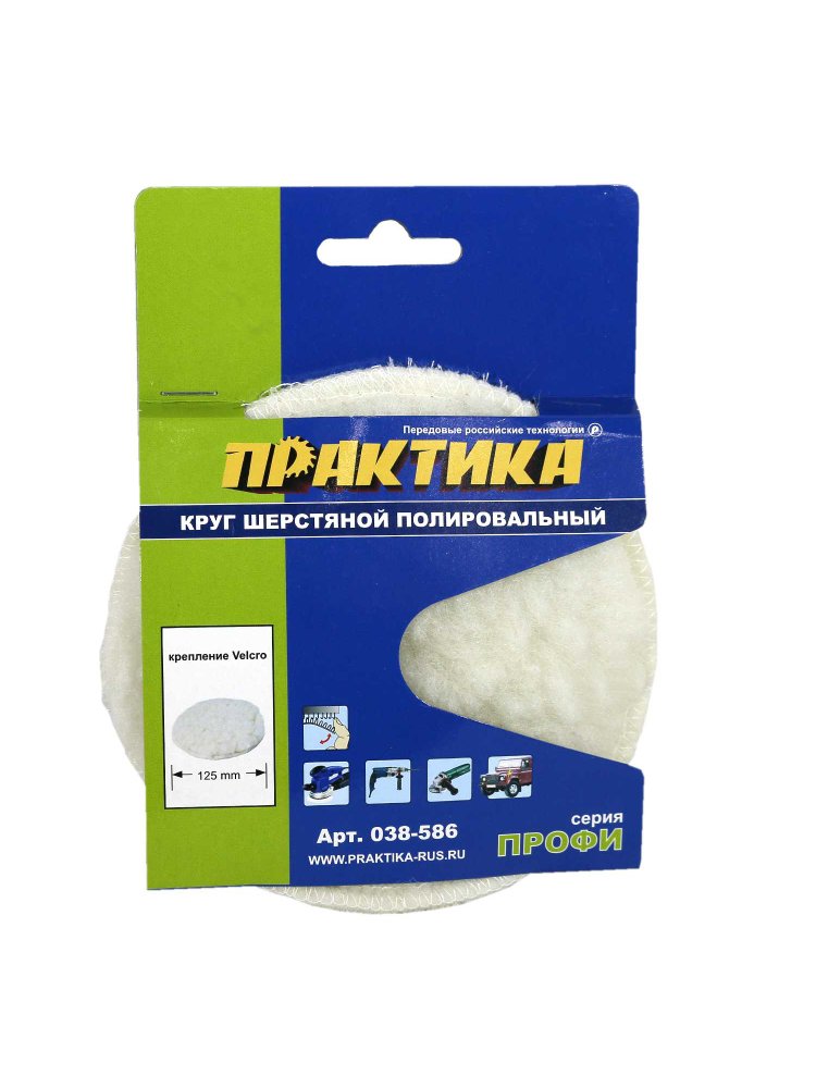 Круг шерстяной ПРАКТИКА полировальный 125 мм, крепление VELCRO
