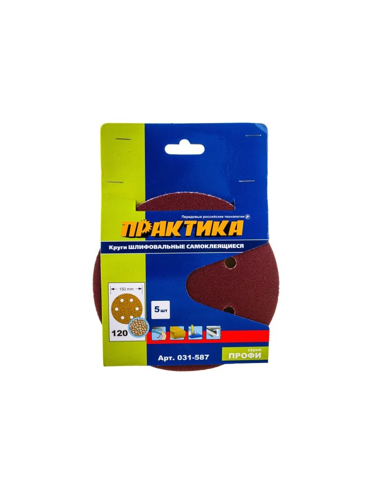 Круги шлифовальные ПРАКТИКА на липкой основе 6 отверстий, 150 мм (P120), 5 шт
