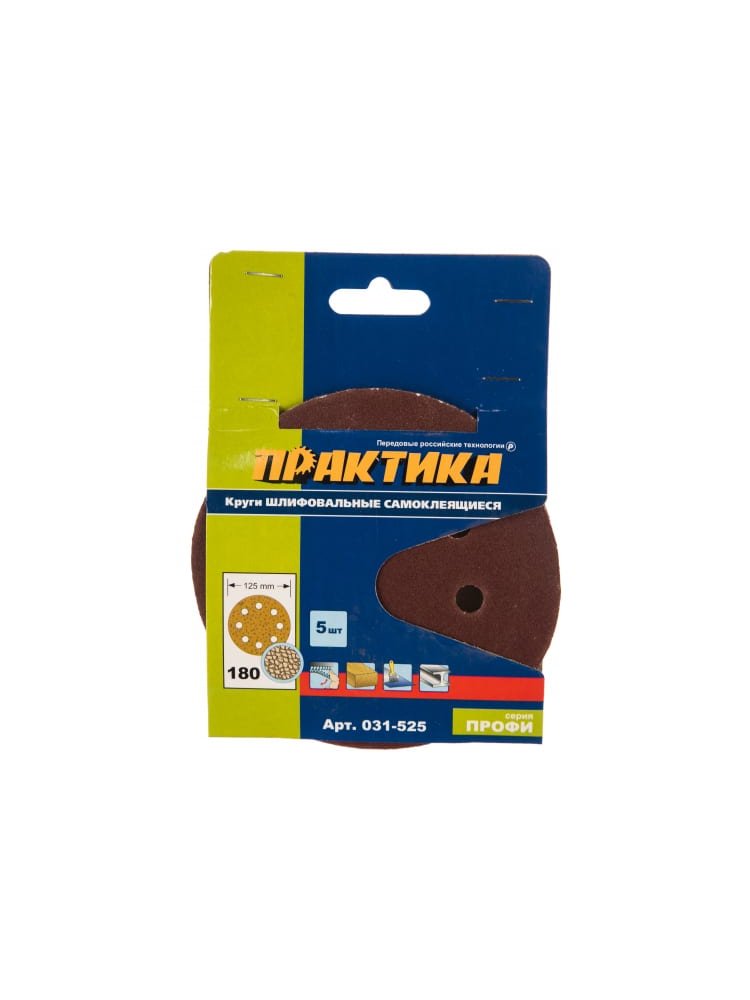Круги шлифовальные ПРАКТИКА на липкой основе 8 отверстий, 125 мм (P180), 5 шт