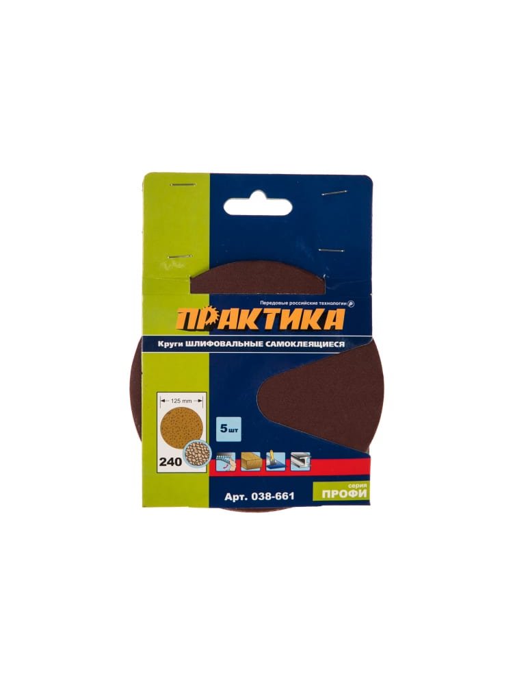 Круги шлифовальные ПРАКТИКА на липкой основе БЕЗ отверстий, 125 мм (P240), 5 шт