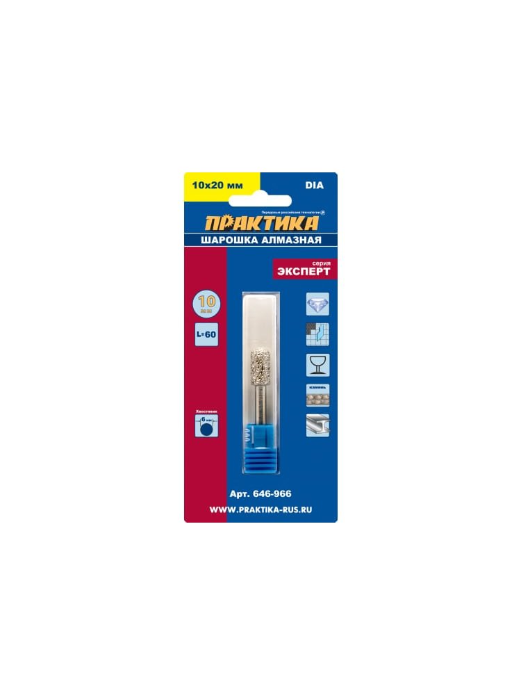 Шарошка алмазная ПРАКТИКА 10*20 мм, хвост 6 мм, цилиндрическая, закругленная