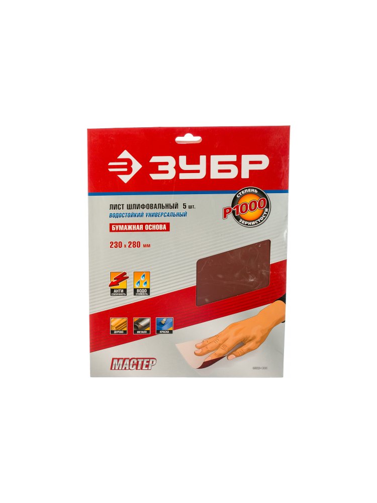 Шлифлист ЗУБР Р1000, 230*280мм на бумажной основе водостойкий, 5шт