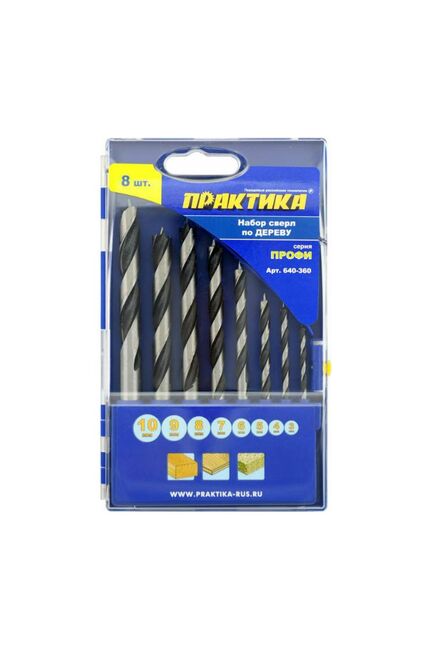 Набор сверл по дереву ПРАКТИКА, 8 предметов