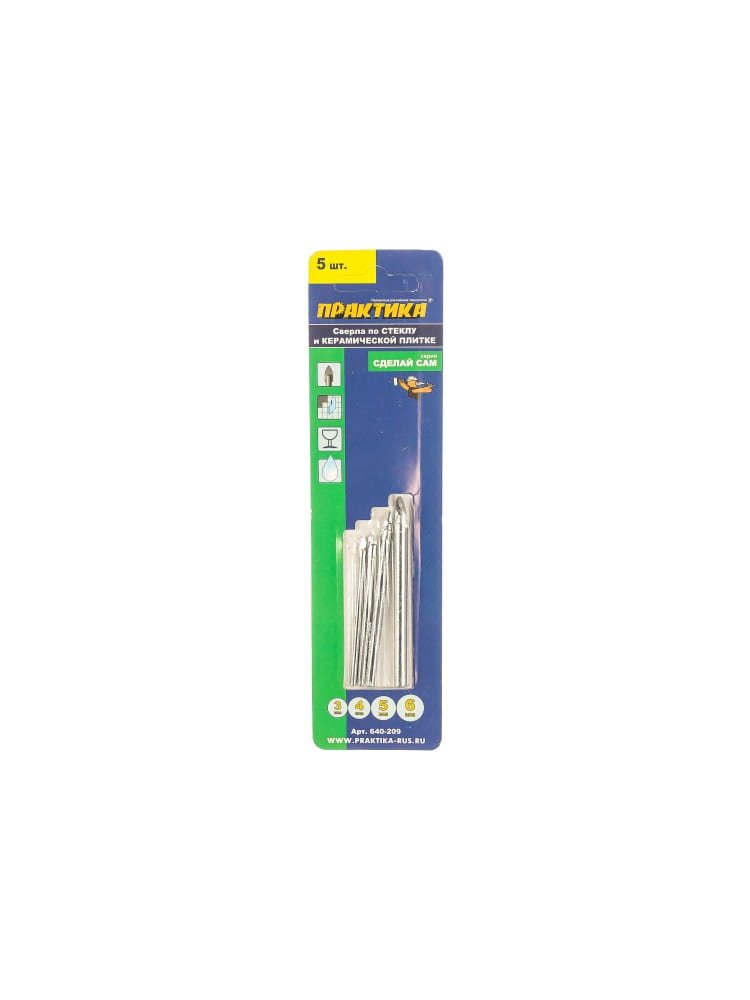 Набор сверл по стеклу и керамике ПРАКТИКА "Сделай сам", 4 шт, 3,4,5,6 мм в Спасск-Дальний