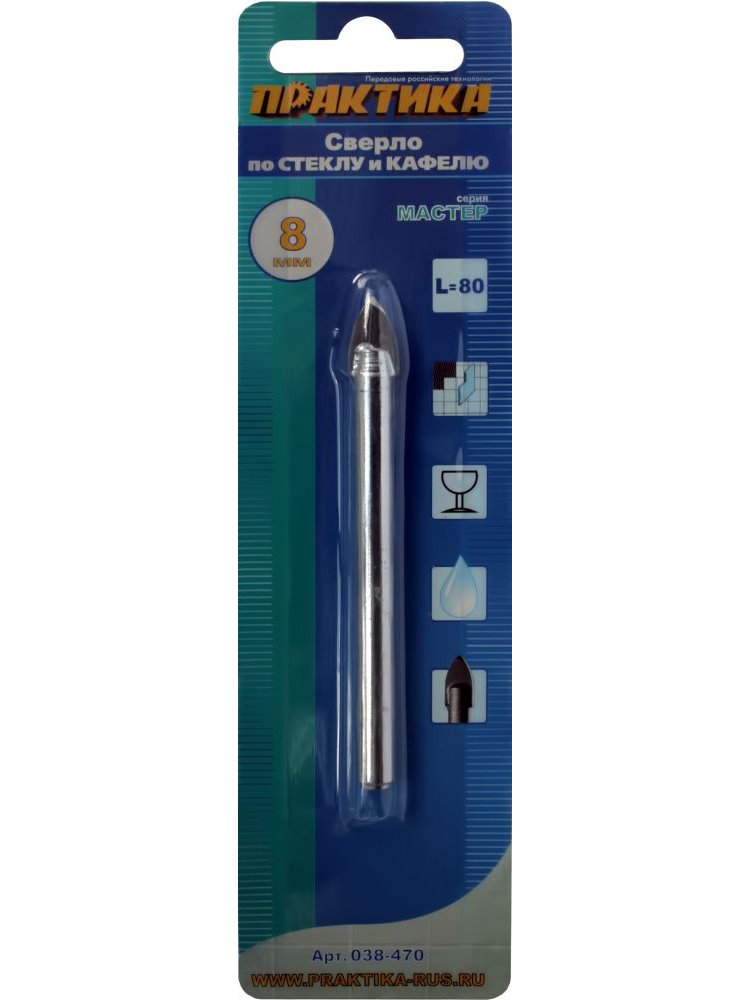 Сверло по стеклу ПРАКТИКА 8х80 мм "Мастер"