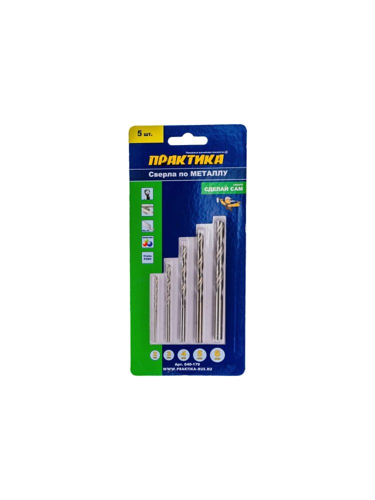 Набор сверл по металлу ПРАКТИКА "Сделай сам", 5 шт 2, 3, 4, 5, 6 мм