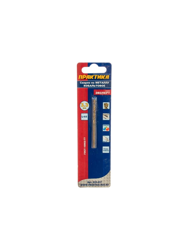 Сверло по металлу ПРАКТИКА кобальтовое 3,3х65 мм