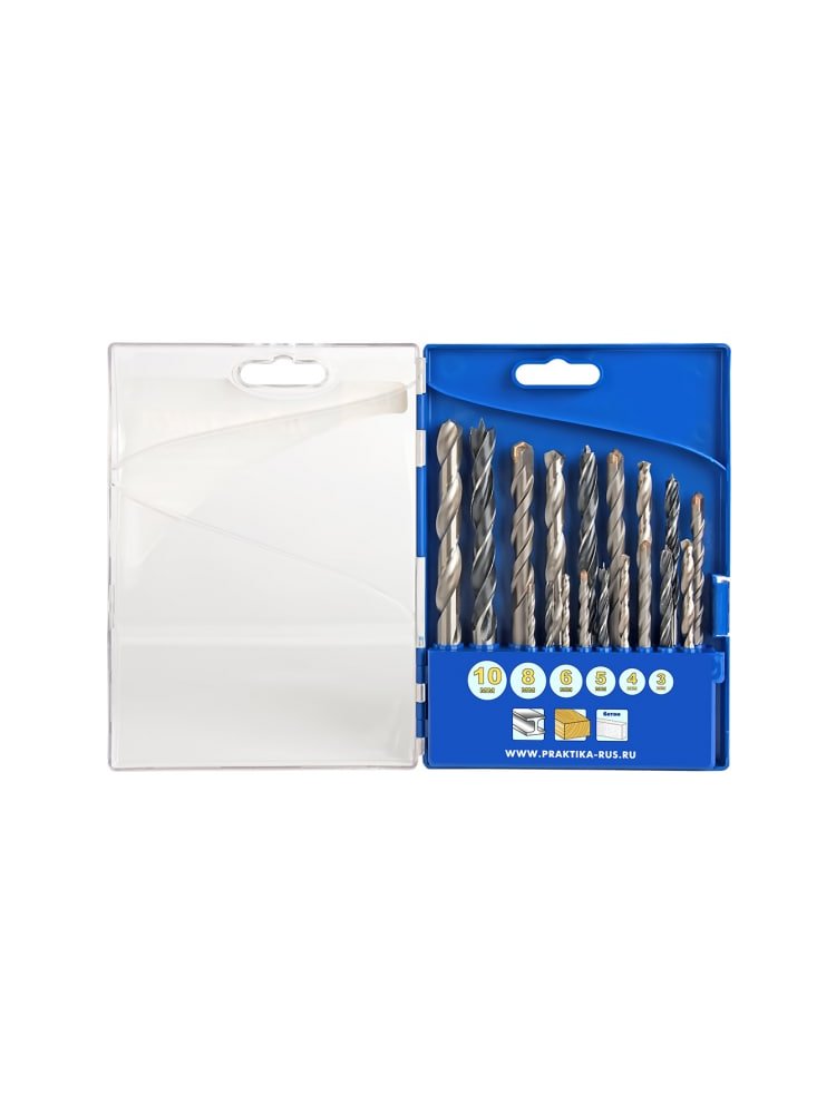 - В наборе 18 сверл популярных диаметров: 3, 4, 5, 6, 8, 10 мм — всегда под рукой нужный размер для любой задачи.