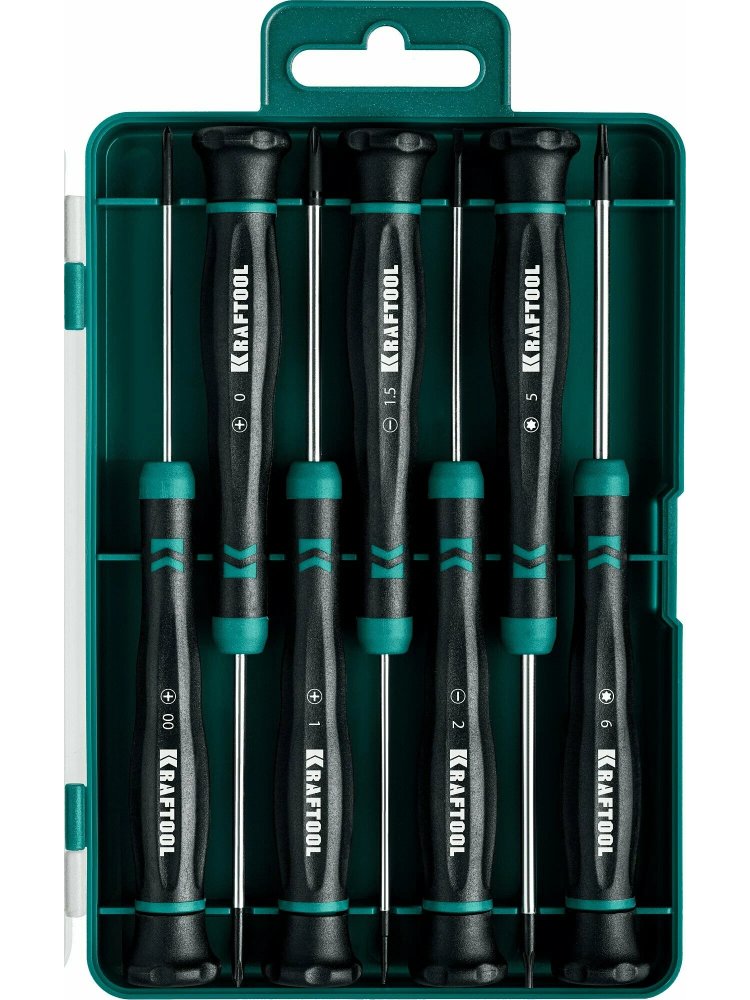 Решайте задачи точного монтажа и ремонта электроники, механики, часов и мелкой техники с максимальной эффективностью! Надёжный комплект отверток для точных работ Electro X-Drive KRAFTOOL из 7 инструментов гарантирует профессиональный результат и безопасность при работе с электрическими устройствами.