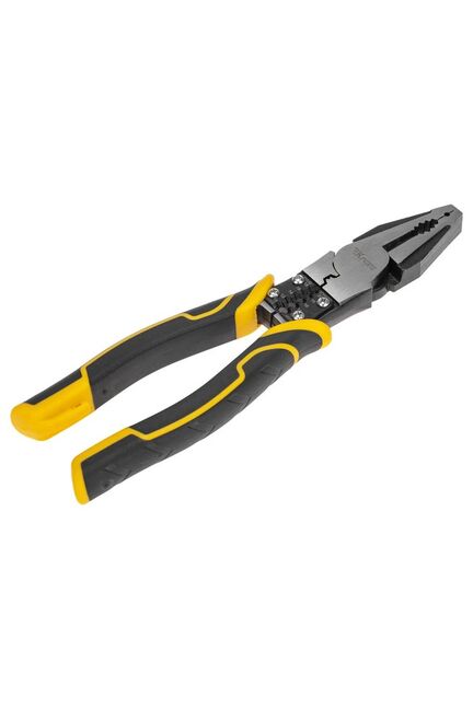 Многофункциональные универсальные плоскогубцы – это инструмент на все случаи жизни включающий в себя: плоскогубцы, бокорезы, зачистку кабеля, обжимку кабеля. Применяются для монтажных работ, а также в быту. Плоскогубцы изготовлены из высококачественной хромованадиевой стали (Cr-V). Оснащены износостойкими двухкомпонентными анатомическими рукоятками, которые не скользят в руках. Инструмент обладает отличной режущей способностью, подходит для резки/зачистки пластика, медных и мягких проводов. Зачистка кабеля: 1/1,5/2,5/4/5 мм2. Универсальные плоскогубцы 200 мм, закаленная сталь, режущие кромки, эргономичные рукоятки, надежный захват и высокое качество исполнения.