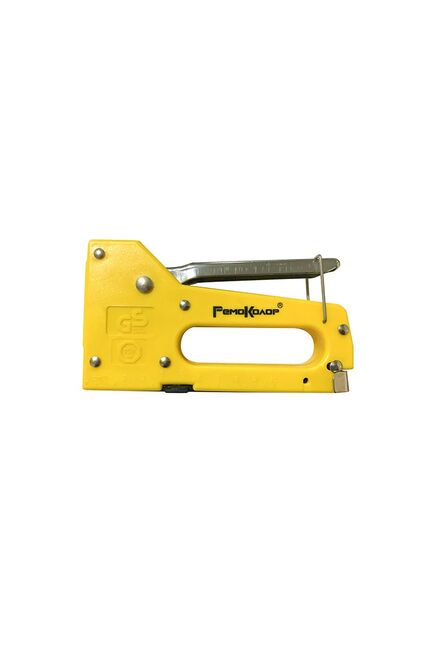 Неразборный корпус из прочных пластиковых деталей, с витой пружиной. Металлическая рукоятка, имеет предохранитель для удобства и безопасности пользователя. Оснащен удобными механизмами для быстрой замены скоб и для легкого нажима рукоятки при забивании скобы. В корпусе имеется окошко-индикатор для контроля остатка скоб. Материал: сталь, пластик Назначение: Строительный степлер — инструмент для крепления скобами различных материалов к деревянному основанию путём их прибивания. В отличие от офисного степлера, скоба строительного степлера не пробивает материал насквозь и ее концы не загибаются. Компактный степлер для скоб №53 (4–8 мм) гарантирует надёжную фиксацию материалов при ремонте и отделке. Прочный, удобный и долговечный.