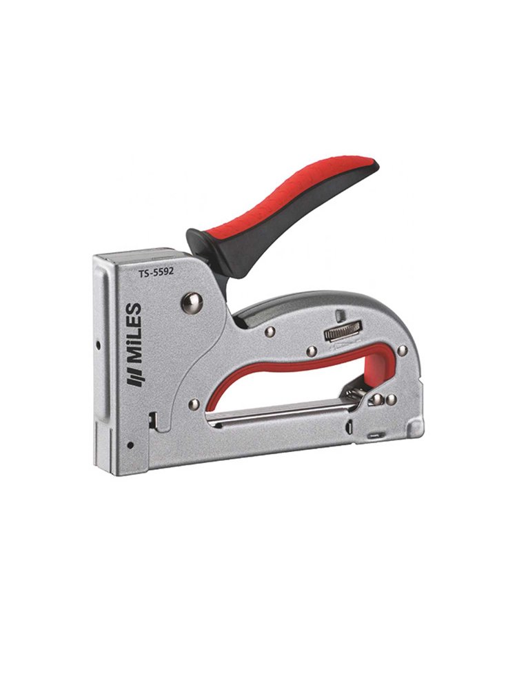 Скобозабивной степлер Miles используется для сбора мебели, каркаса, деревянных рамок, для декорирования помещений. Он имеет неразборный стальной корпус, что увеличивает срок службы. Двухкомпонентная рукоятка делает рабочий процесс более комфортным. Специальное окошко-индикатор позволяет контролировать наличие скоб. Предусмотрена регулировка силы удара - для работы с материалами разной твердости. Металлический корпус, скобы №53, эргономичная рукоятка, простая заправка. Для отделки, крепления тканей и изоляции. Профессиональное качество.