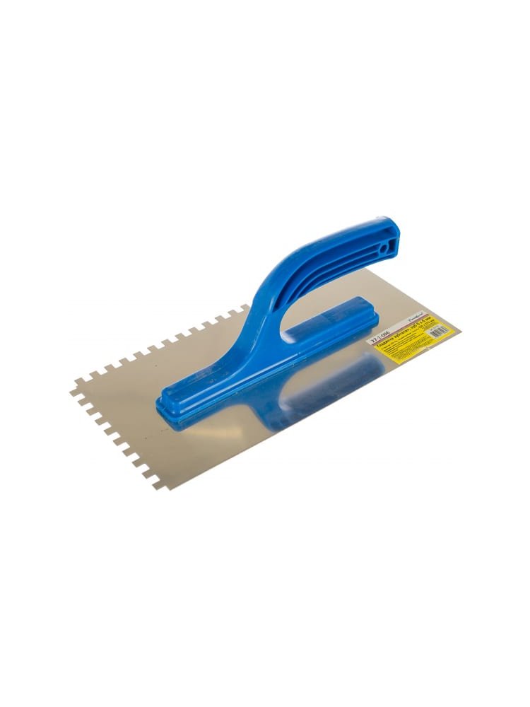 Применение: для равномерного распределения строительных растворов, смесей и клеев, сглаживания швов и неровностей. Для точного нанесения клея при укладке плитки. Нержавеющая сталь 130х270 мм, зуб 6 мм, удобная ручка, легко очищается, долговечна.