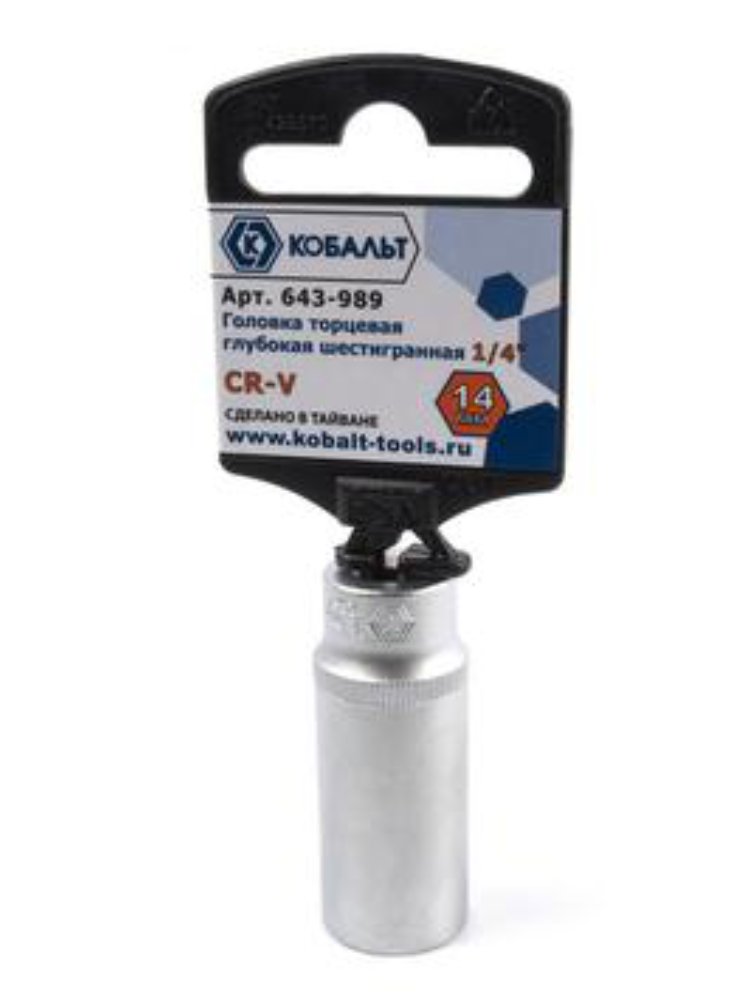 Головка торцевая глубокая 1/4" 14 мм КОБАЛЬТ