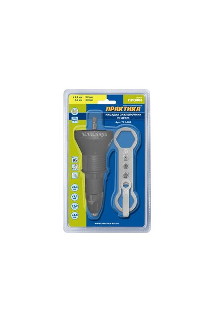 Заклепочник ПРАКТИКА насадка для шуруповерта для заклепок 2,4-4,8 мм пластик. корпус в Спасск-Дальний