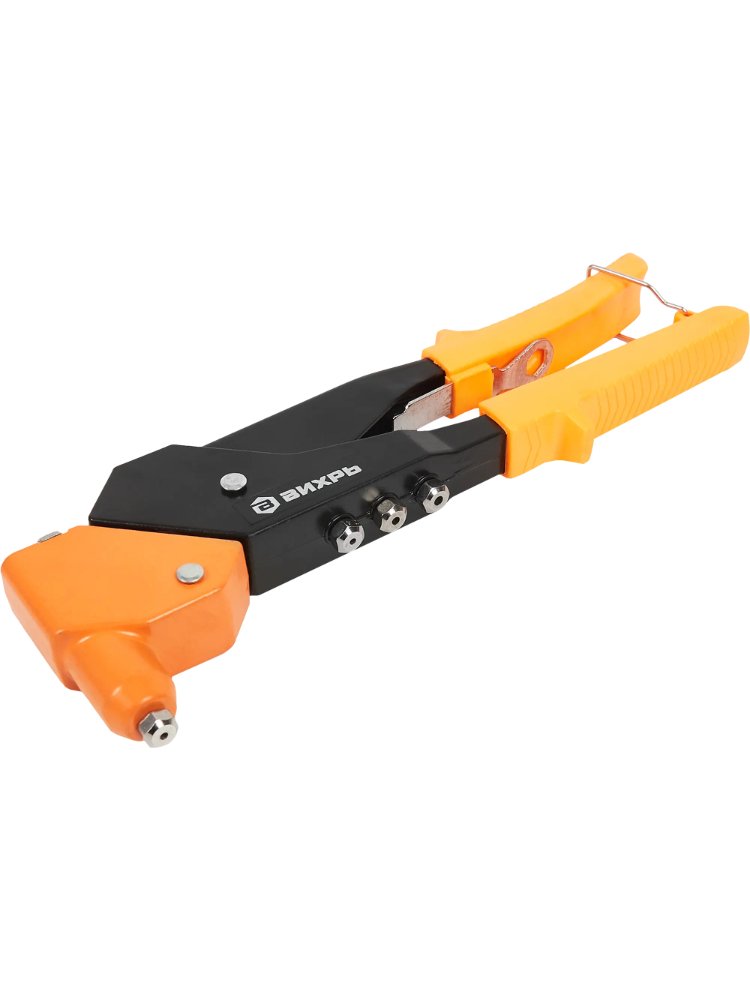 Поворотный заклепочник 250мм, 360гр Вихрь - простой и удобный в работе ручной инструмент для скрепления различных материалов при помощи заклепок размерами: 2.4, 3.2, 4, 4.8 мм. Изделие совместимо с заклепками из стали, алюминия, нержавеющей стали и меди. Длина инструмента 225 мм. Головка - поворотная (360º). Поворотная головка 360°, длина 250 мм, подходит для заклёпок 2,4–4,8 мм — идеален для сложных и труднодоступных соединений.
