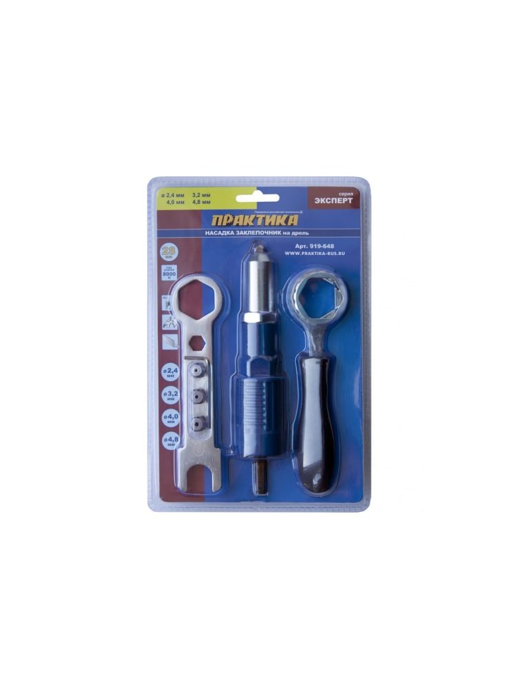 Заклепочник ПРАКТИКА насадка для шуруповерта для заклепок 2,4-4,8 мм метал. корпус, с бок.рукояткой в Спасск-Дальний