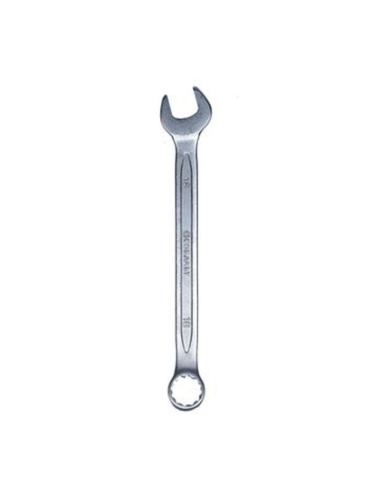 Ключ комбинированный КОБАЛЬТ, предназначен для отвинчивания/завинчивания мелкого резьбового крепежа с шестигранными головками при производстве строительных, электротехнических, монтажных и автосервисных работ. Изготовлен по стандарту DIN 3113 из хром-ванадиевой стали Cr50BV30, с закалкой рабочих поверхностей до 47-50 HRC. Защитное матовое хромовое покрытие ключа, нанесенное электролитическим способом, предохраняет от коррозии, улучшает внешний вид, при этом ключ не скользит в ладони в процессе работы. универсальный гаечный ключ, состоящий из двух рабочих профилей - рожкового и накидного. Используется при проведении слесарно-монтажных работ на производстве, в автомастерских и в быту. Комбинированный ключ 18 мм: прочная сталь, два профиля, антикоррозийная защита. Для монтажных, автомастерских и бытовых работ. Эргономичный и долговечный.