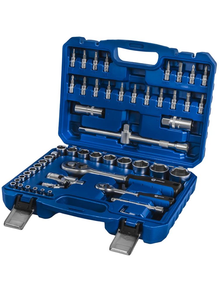 54 инструмента в прочном кейсе: головки, трещотки, ключи 1/4" и 1/2", для авто, дома и мастерской. Сталь CrV, универсальный выбор!