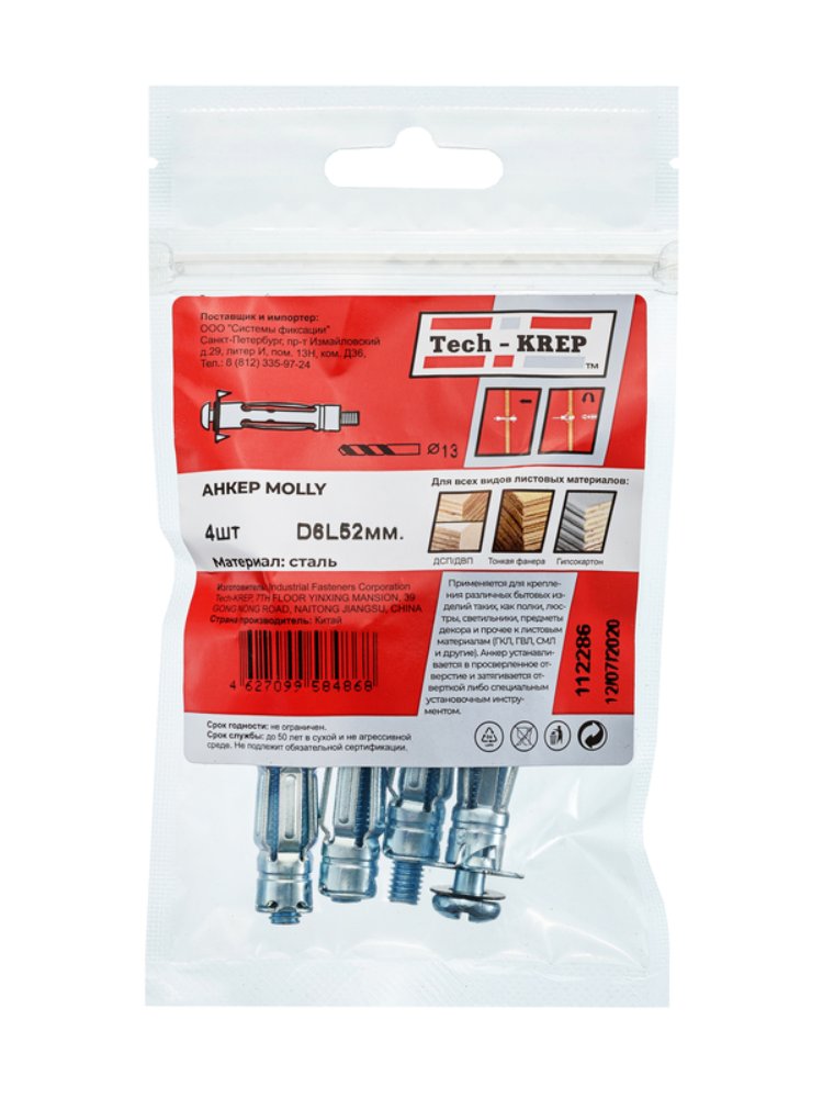 Анкер (дюбель) Молли М6х52 (4 шт) - пакет Tech-Krep