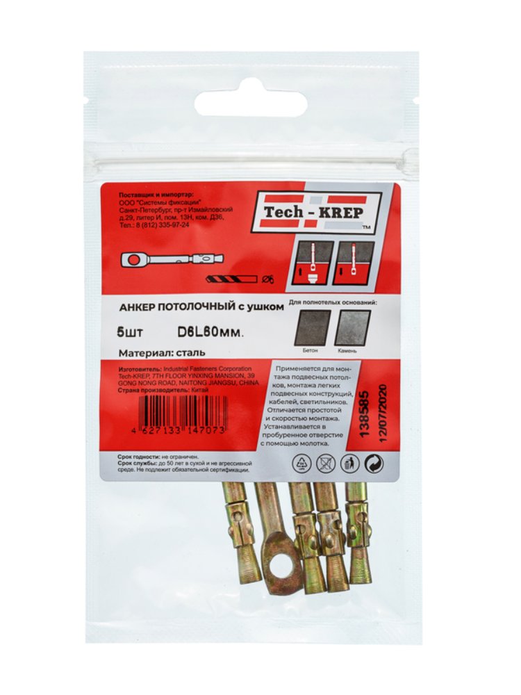 Анкер потолочный с ушком WAM 6х60 (5 шт) - пакет Tech-Krep