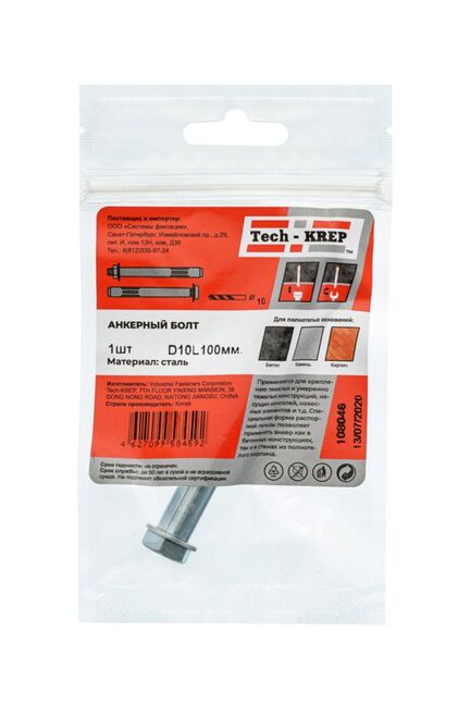 Анкерный болт 10х100 (1 шт) - пакет Tech-Krep в Спасск-Дальний