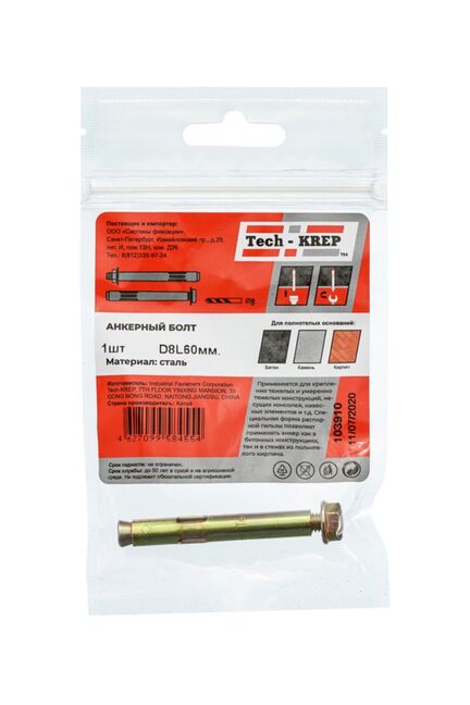 Анкерный болт 8х60 (1 шт) - пакет Tech-Krep в Спасск-Дальний