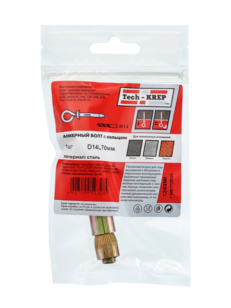 Анкерный болт с кольцом 14х70 мм от Tech-Krep представляет собой надежный крепежный элемент, предназначенный для фиксации конструкций к бетонным, кирпичным или каменным основаниям. Изготовлен из высокопрочной стали с антикоррозийным покрытием, что обеспечивает долговечность и устойчивость к внешним воздействиям. Диаметр 14 мм и длина 70 мм позволяют использовать его для крепления тяжелых элементов, а кольцо на конце болта упрощает монтаж подвесных систем или тросов. Упаковка содержит 1 штуку, что удобно для точечного применения.