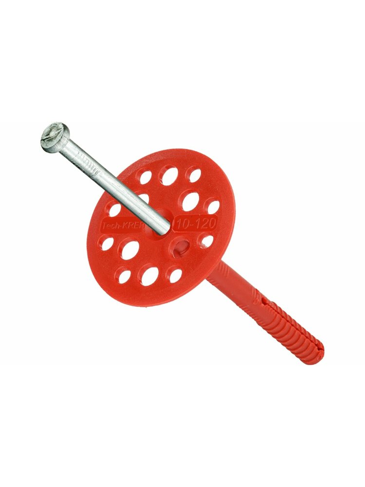 Дюбель крепления теплоизоляции с пластиковым гвоздём. Материал - полипропилен Борт – потайной. Дюбель предназначен для крепления легких термоизоляционных материалов к бетонному или кирпичному основанию. Шляпка дюбеля способствует надежному удержанию материала теплоизоляции, препятствуя прорыву в месте крепления. Ребра перед распорной зоной препятствуют проваливанию дюбеля в просверленное отверстие. Для быстрого и прочного крепления утеплителя к бетону и кирпичу, высокая несущая способность, 10×120 мм, упаковка 1000 шт.