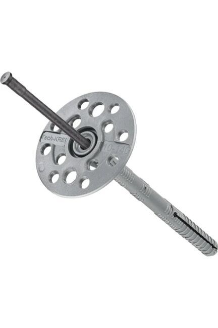 Дюбель крепления теплоизоляции с пластиковым гвоздём. Материал - полипропилен Борт – потайной. Дюбель предназначен для крепления легких термоизоляционных материалов к бетонному или кирпичному основанию. Шляпка дюбеля способствует надежному удержанию материала теплоизоляции, препятствуя прорыву в месте крепления. Ребра перед распорной зоной препятствуют проваливанию дюбеля в просверленное отверстие. Прочный дюбель 10×140 мм для надежной фиксации теплоизоляции в бетон и кирпич, эффективен при монтаже фасадов, комплект 500 штук.