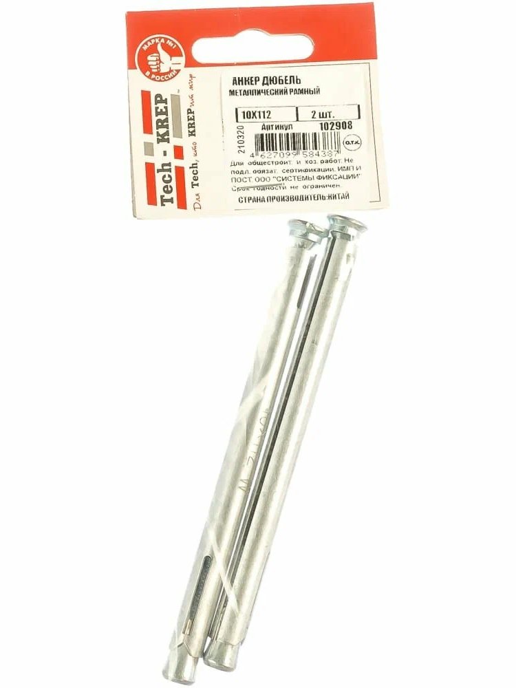 Металлический рамный дюбель 10х112 мм от Tech-Krep предназначен для надежного крепления конструкций к бетонным, кирпичным и другим основаниям. Изделие выполнено из прочной оцинкованной стали, что обеспечивает устойчивость к коррозии и долгий срок службы. Конструкция дюбеля гарантирует высокую прочность соединения даже при значительных нагрузках. В комплекте 2 штуки, упакованные в удобный пакет, что упрощает хранение и транспортировку.