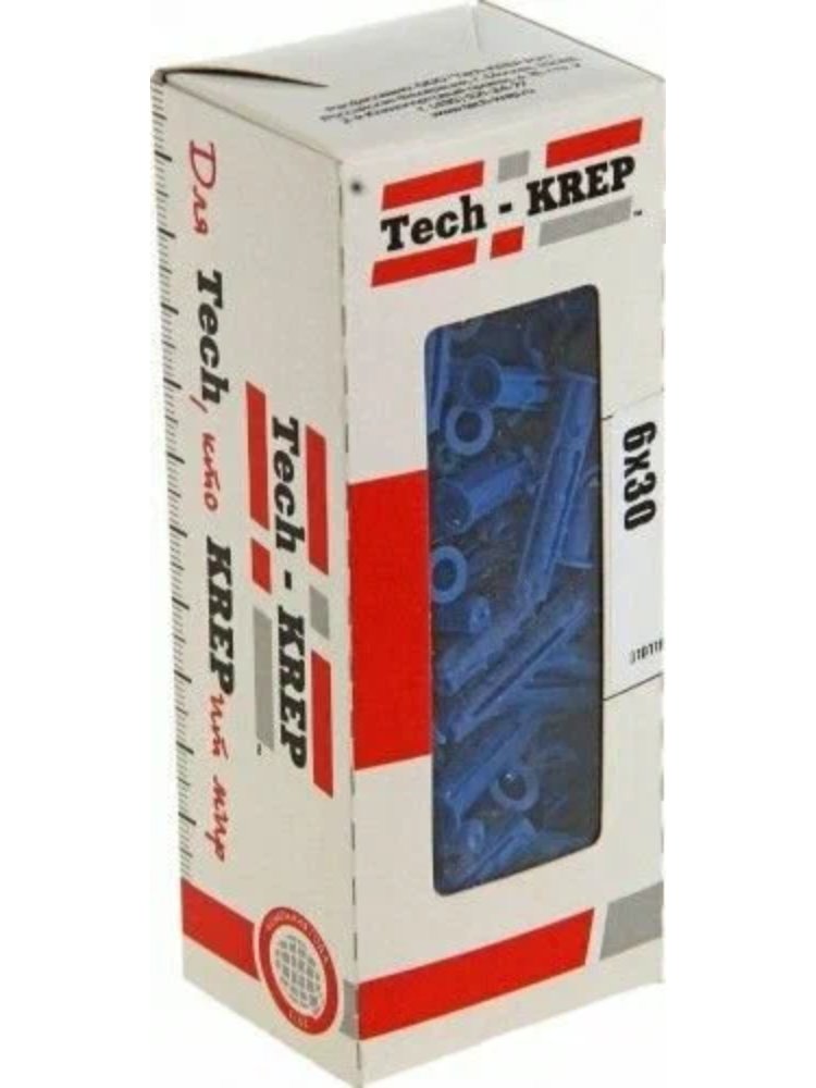 Дюбель распорный 6х30 мм "Чапай" из полипропилена с шипами и усами, 100 шт. в коробке Tech-K. Надежное крепление к бетону и кирпичу.