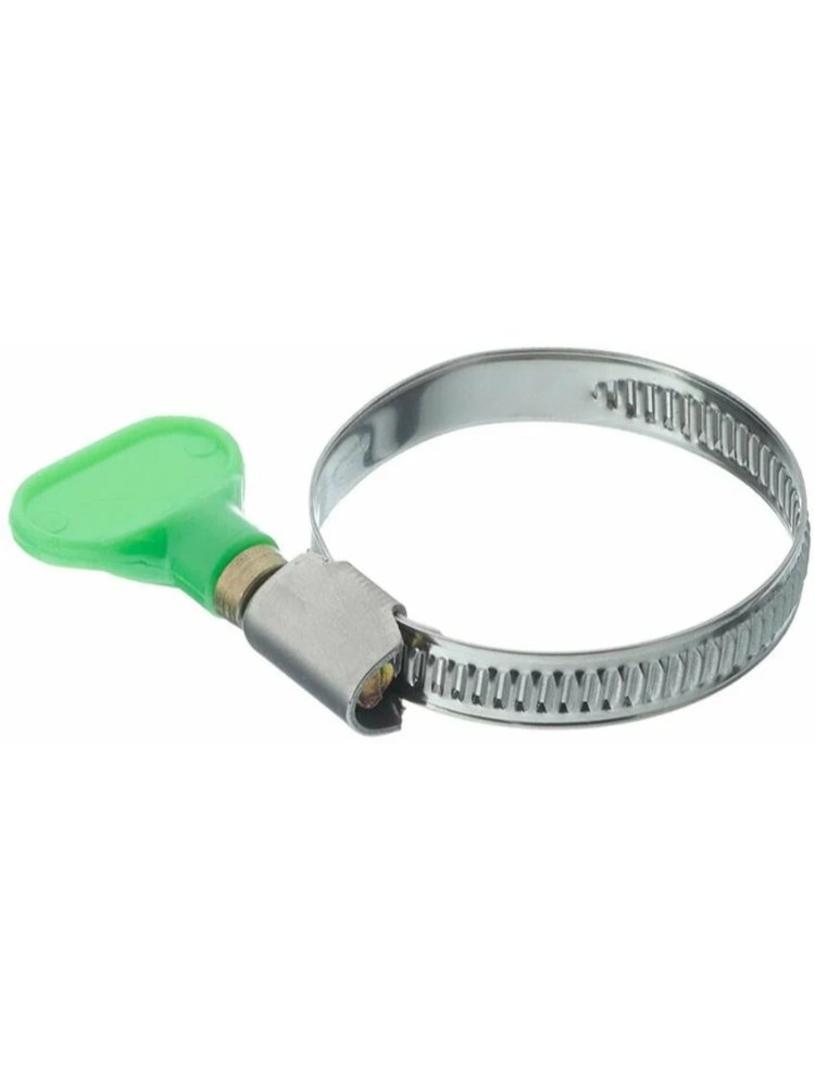 Надёжный обжимной хомут из нержавеющей стали с удобной ручкой-бабочкой обеспечивает прочную фиксацию шлангов и труб диаметром 32–50 мм в сантехнических и строительных работах. Коррозионно-стойкий материал гарантирует долговечность даже во влажных условиях.