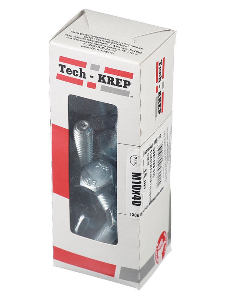 Болт с шестигранной головкой DIN 933, оцинкованный, размером М10х40, в упаковке 15 штук, в коробке с окном от бренда Tech-Krep – это надежный крепежный элемент, изготовленный из высококачественной стали с цинковым покрытием для защиты от коррозии. Предназначен для создания прочных разъемных соединений в сочетании с гайками и шайбами. Подходит для использования в условиях повышенной влажности благодаря антикоррозийному покрытию. Диаметр резьбы – 10 мм, длина – 40 мм, что делает его универсальным для различных монтажных задач.