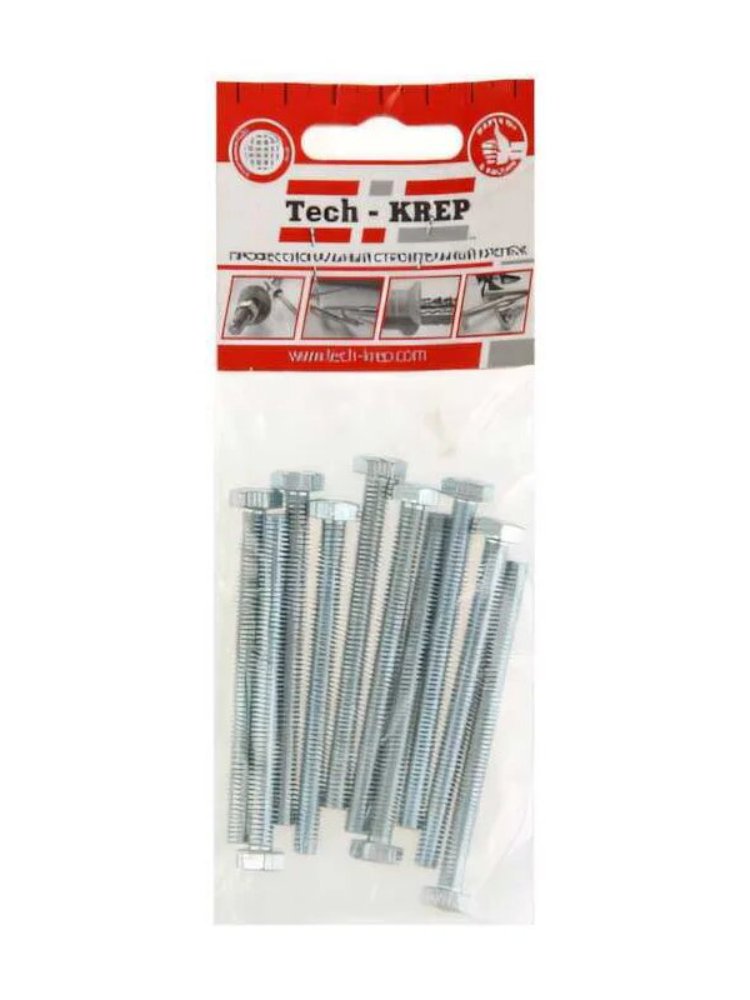 Болт DIN933 М6х70 с шестигранной головкой, оцинкованный, в упаковке 10 шт. Tech-Krep. Прочный, устойчив к коррозии, для строительства и монтажа.