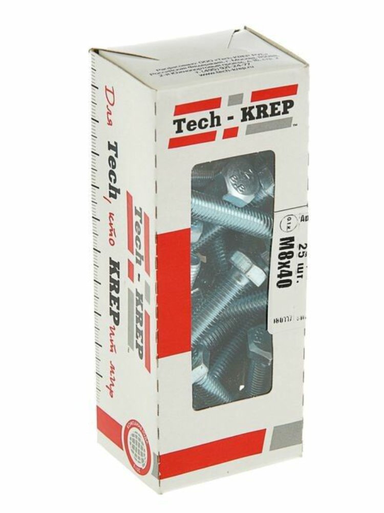 Болт DIN933 с шестигранной головкой оцинк. М8х40 от Tech-Krep, 25 шт в коробке. Прочный, устойчив к коррозии, для строительства и ремонта.