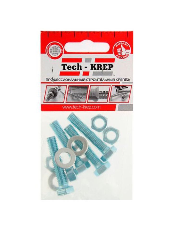 Комплект крепежа Tech-Krep: болт DIN 933 М8х40, гайка, шайба, 4 шт. Оцинкованное покрытие, высокая прочность, для надежных соединений в строительстве.